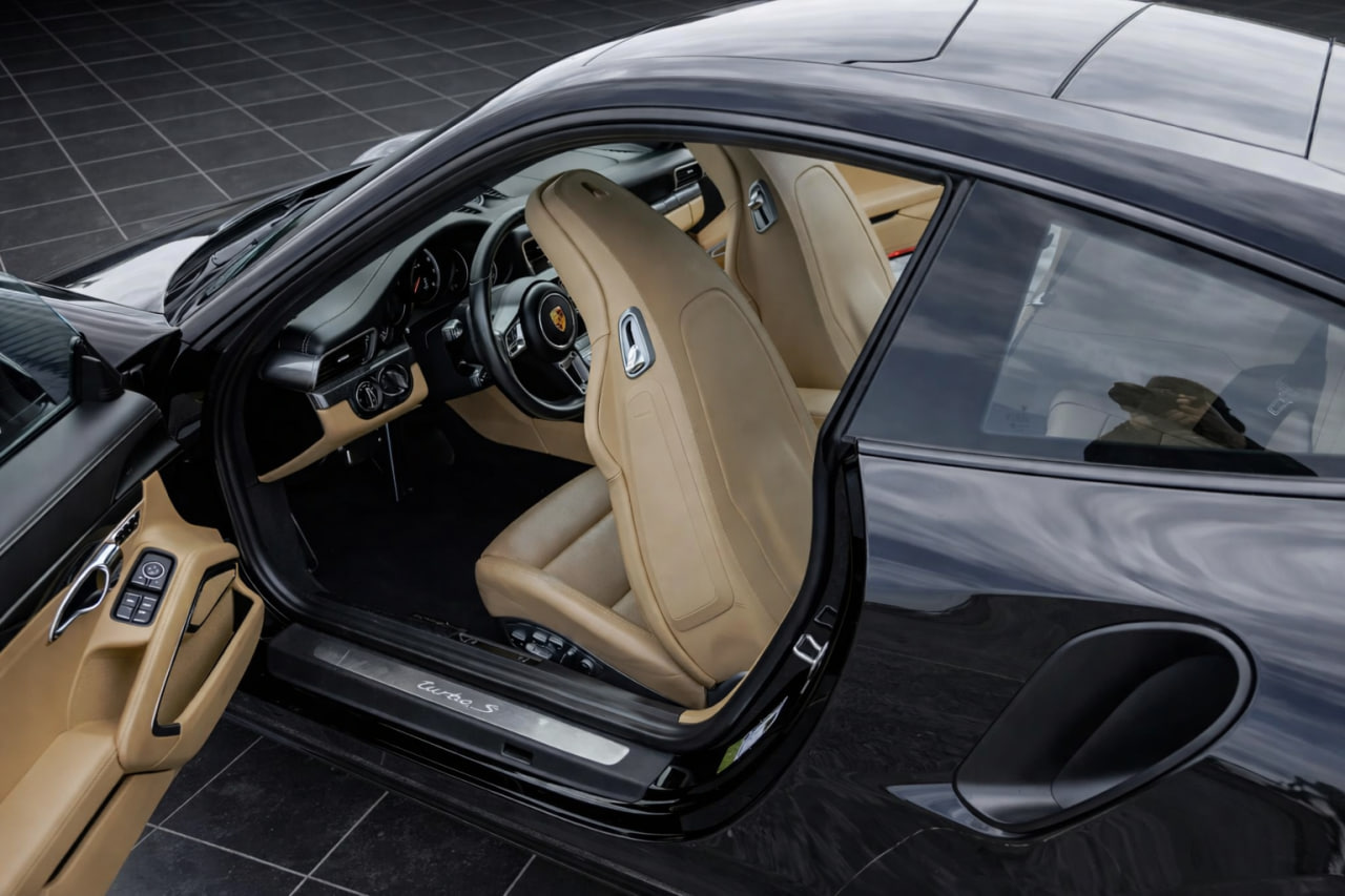This 2017 Porsche 911 Turbo S Coupe shows 15,945 miles and was equipped from the factory with the front-axle lift system, Power Steering Plus, a Burmester premium audio system, adaptive cruise control, and heated as well as ventilated front seats upholstered in Luxor Beige leather. Motivation comes from a twin-turbocharged 3.8-liter flat-six engine paired with a seven-speed PDK dual-clutch transmission, sending power to all four wheels through an electronic limited-slip rear differential. Finished in Jet Black Metallic, the car also features the Sport Chrono Package, 20-inch center-lock wheels, Porsche Ceramic Composite Brakes, LED headlights, a rearview camera, and Lane Change Assist.