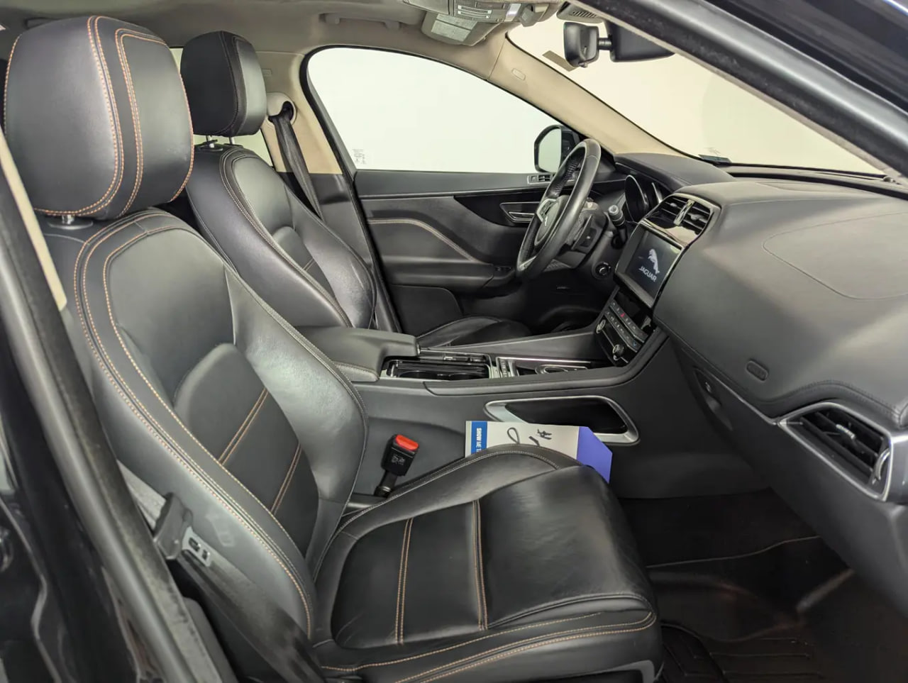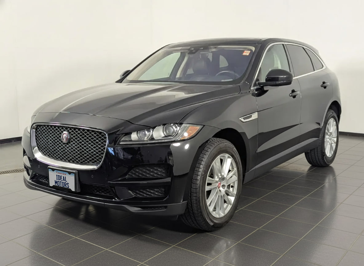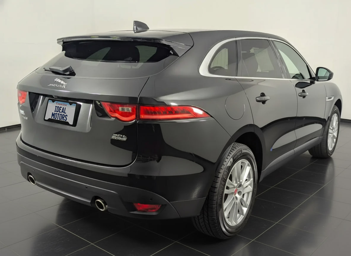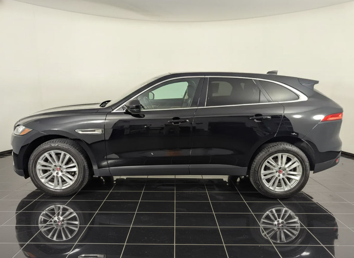 Powering this F-PACE is a 2.0L turbocharged inline-4 engine, paired with an 8-speed automatic transmission and all-wheel drive, providing balanced performance and all-season capability. The exterior is finished in Black, while the interior features an upscale Ebony leather cabin with contrast stitching, creating a sophisticated and comfortable atmosphere.