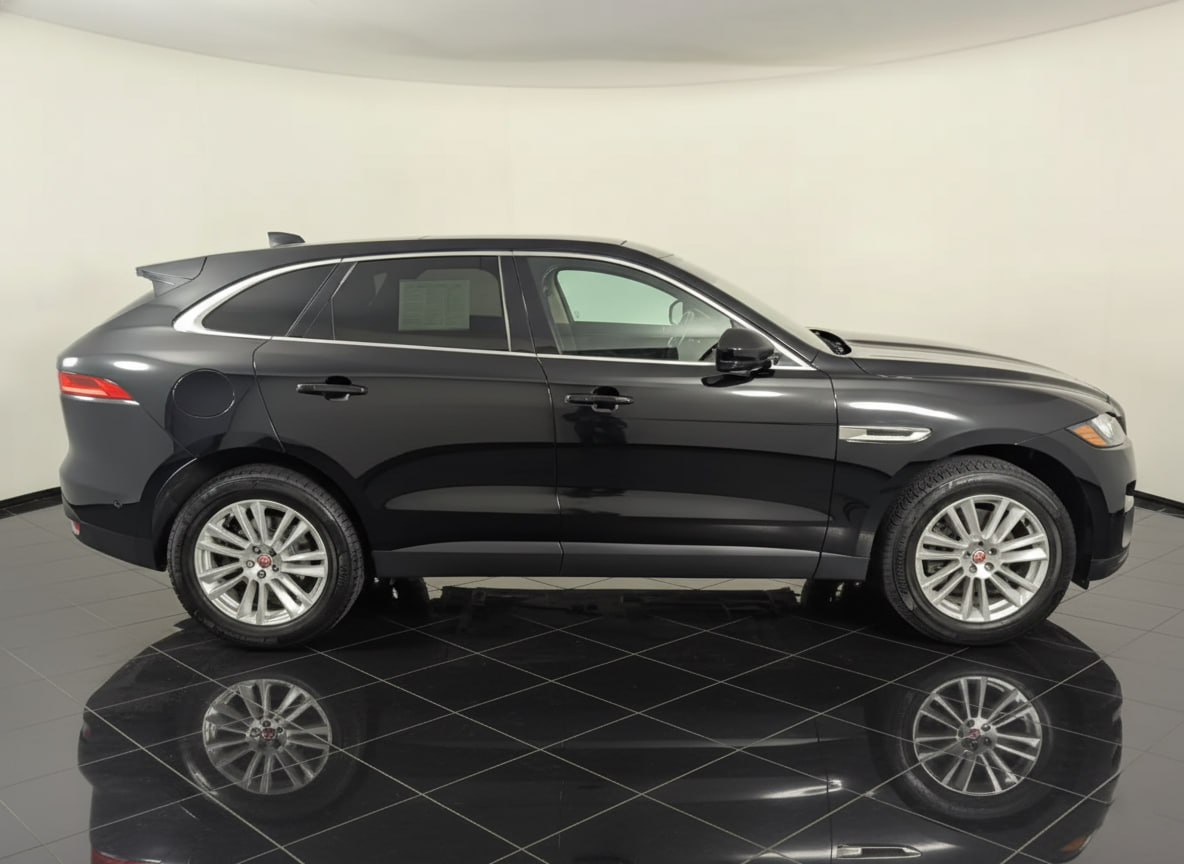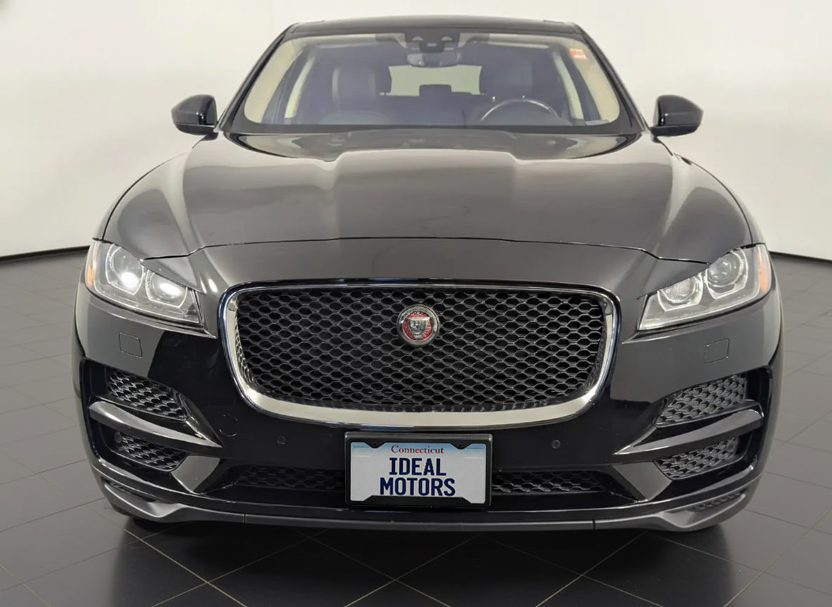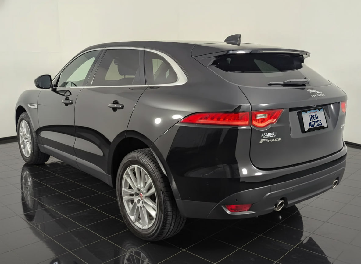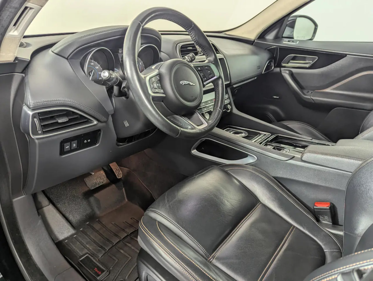 Powering this F-PACE is a 2.0L turbocharged inline-4 engine, paired with an 8-speed automatic transmission and all-wheel drive, providing balanced performance and all-season capability. The exterior is finished in Black, while the interior features an upscale Ebony leather cabin with contrast stitching, creating a sophisticated and comfortable atmosphere.