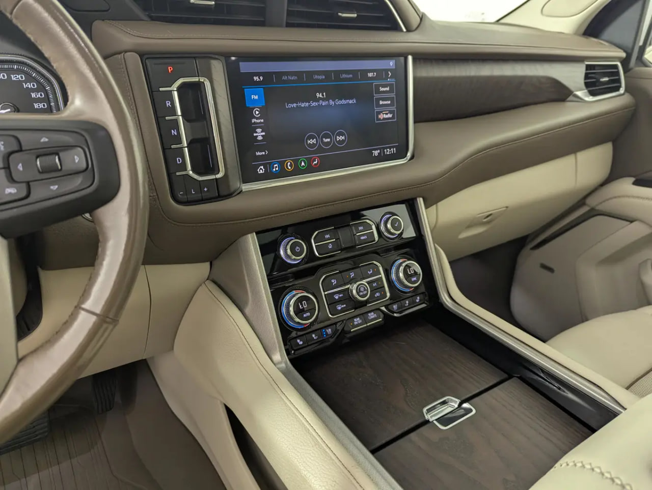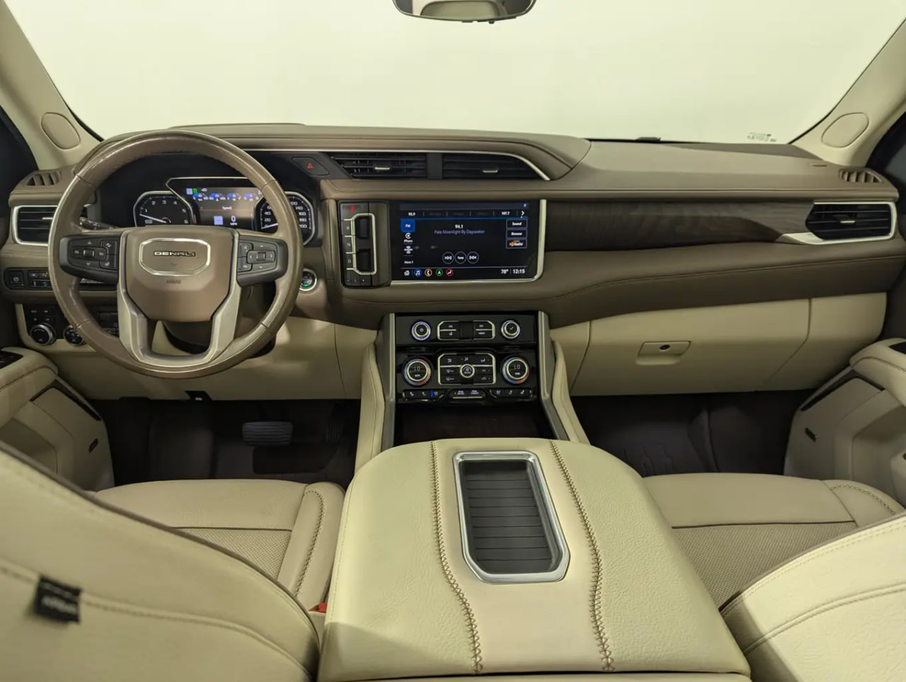 Inside, the Yukon Denali is loaded with luxury and technology, including adaptive cruise control, navigation, Apple CarPlay and Android Auto, touchscreen and voice-activated controls, Bluetooth phone and audio streaming, a Wi-Fi hotspot, and a 15-inch color heads-up display. A 360-degree HD surround camera system provides excellent visibility and confidence in tight spaces.