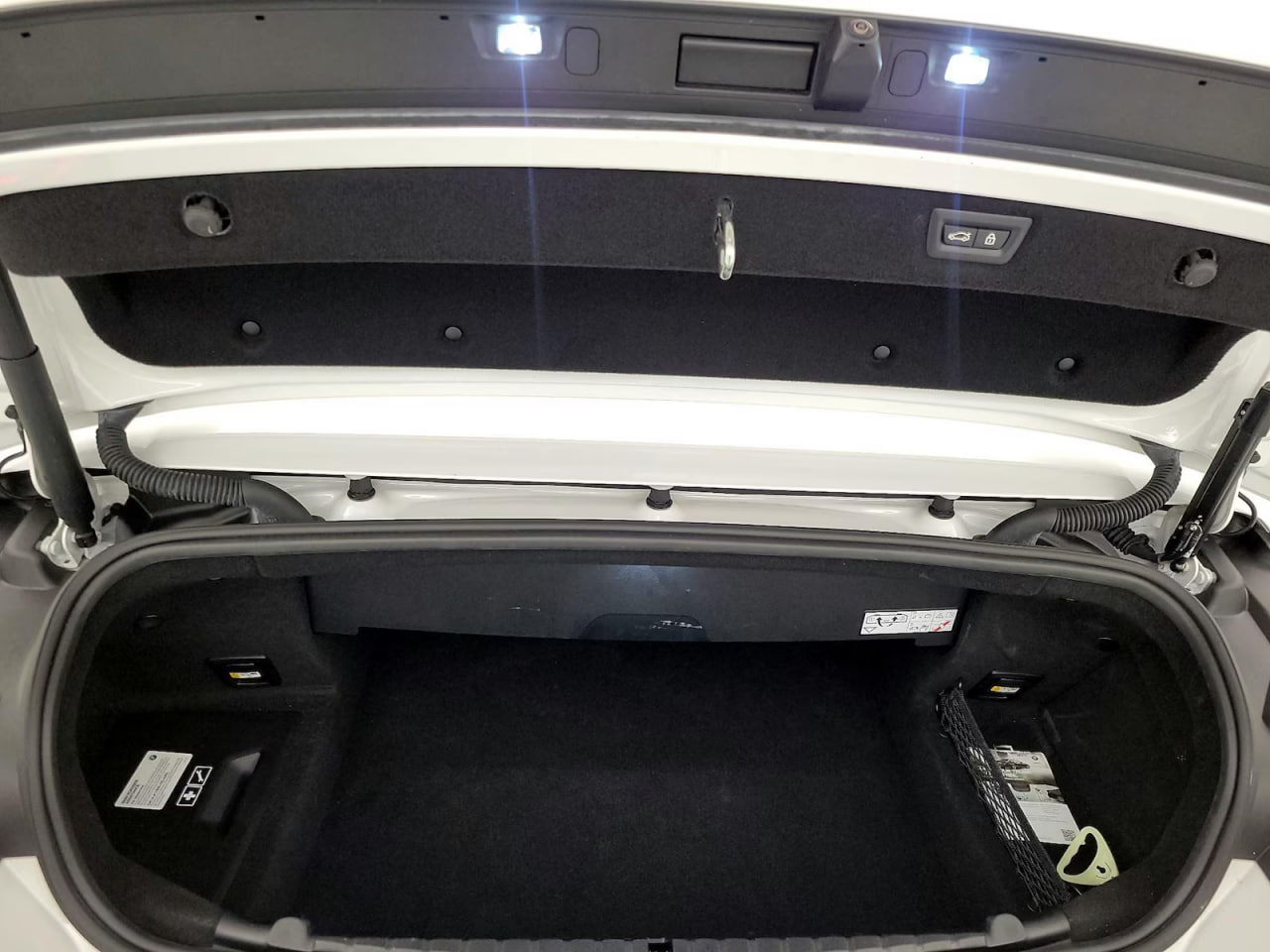 Advanced driver assistance features include adaptive cruise control, blind spot monitoring, cross-traffic alert, lane departure warning, automated parking, parking sensors, and a rearview camera. Exterior enhancements such as 20-inch Plus wheels, rear spoiler, and soft top complete the vehicle’s aggressive yet sophisticated design.