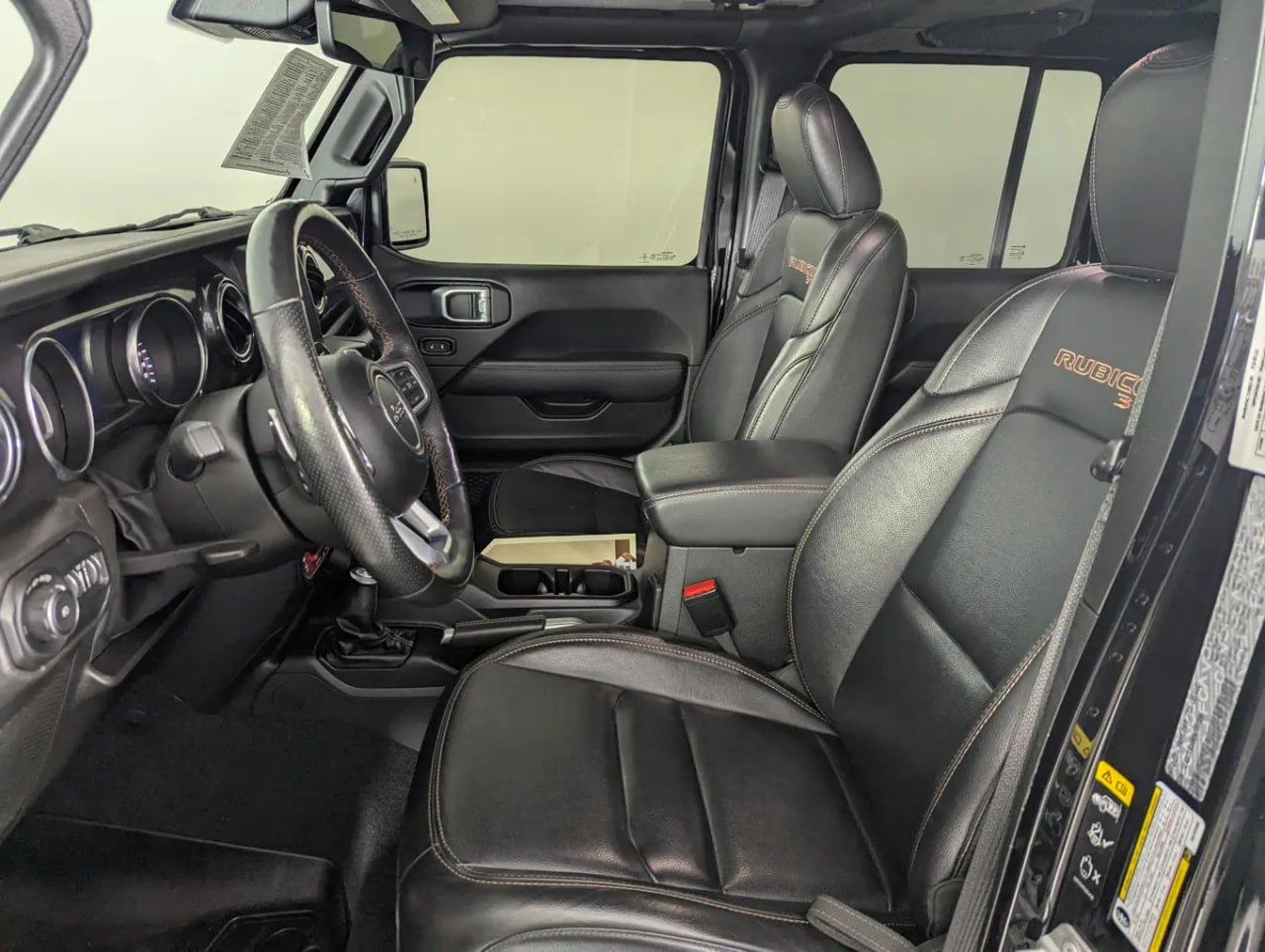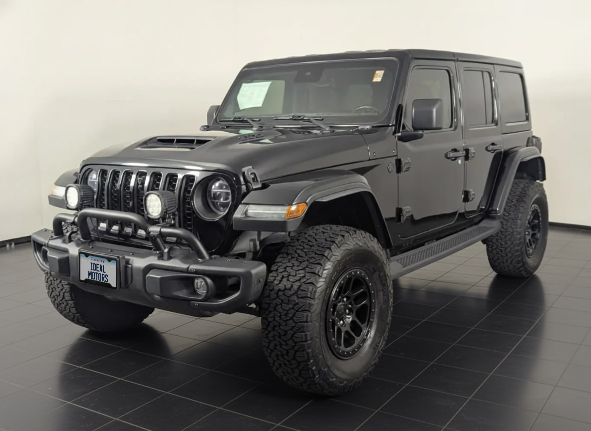 This 2022 Jeep Wrangler Unlimited Rubicon 392 stands out as an exceptional blend of raw V8 performance and legendary off-road engineering, supported by a Clean CARFAX and powered by the iconic 6.4L SRT HEMI V8 engine. Built for true enthusiasts, it delivers uncompromising capability while offering upscale comfort and advanced technology in a rugged SUV platform. Performance is channeled through an 8-speed automatic transmission and a full-time 4WD system, with Rubicon 392–specific suspension tuning, a 4.56 rear axle ratio, and a 97-mph speed calibration enhancing both trail and highway performance. Finished in Black Clearcoat with a Black leather interior, this Wrangler features aggressive styling and premium materials throughout.